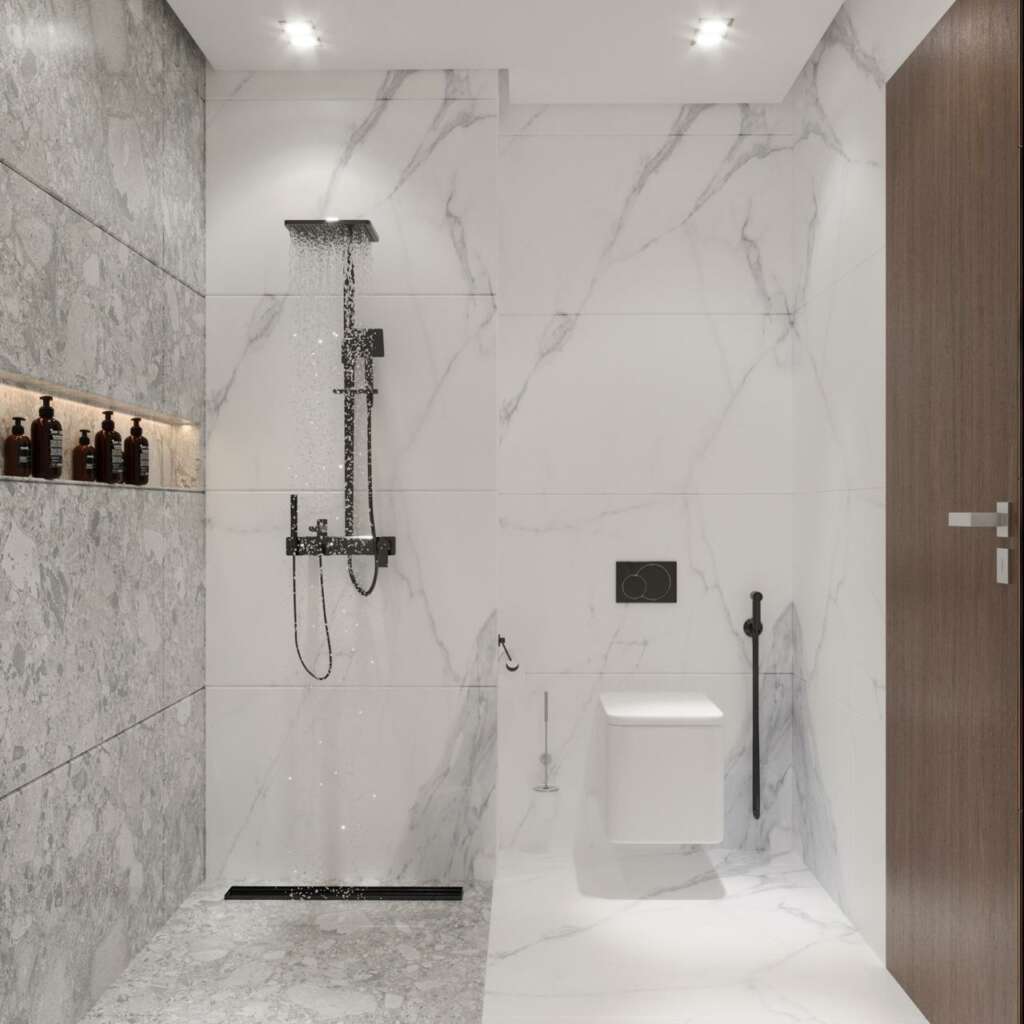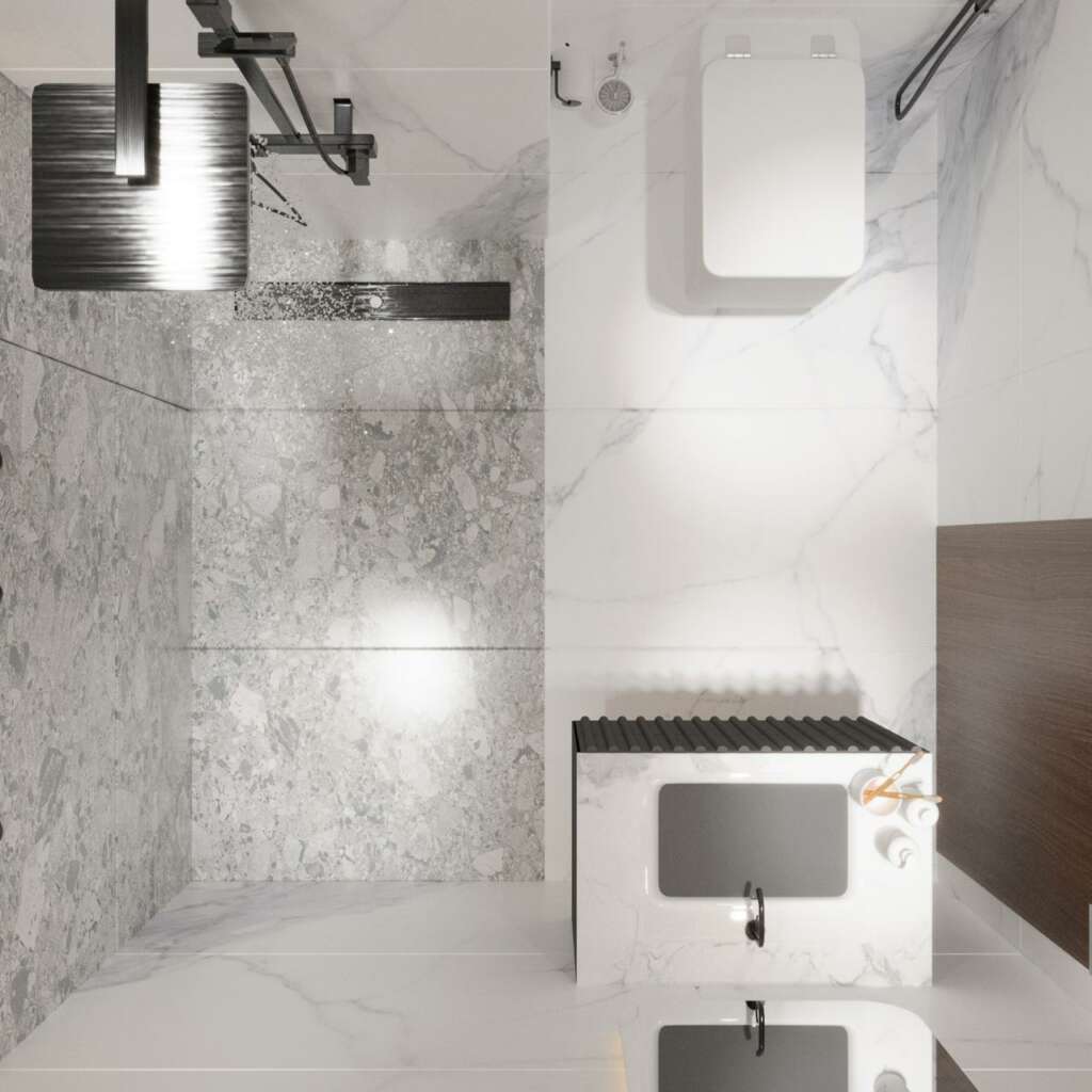 RĂ©alisĂ©e avec des matĂ©riaux nobles et durables, elle se distingue par ses revĂȘtements en cĂ©ramique premium, sa robinetterie design et ses finitions soignĂ©es. Chaque Ă©lĂ©ment reflĂšte un haut niveau de qualitĂ© et dâĂ©lĂ©gance.