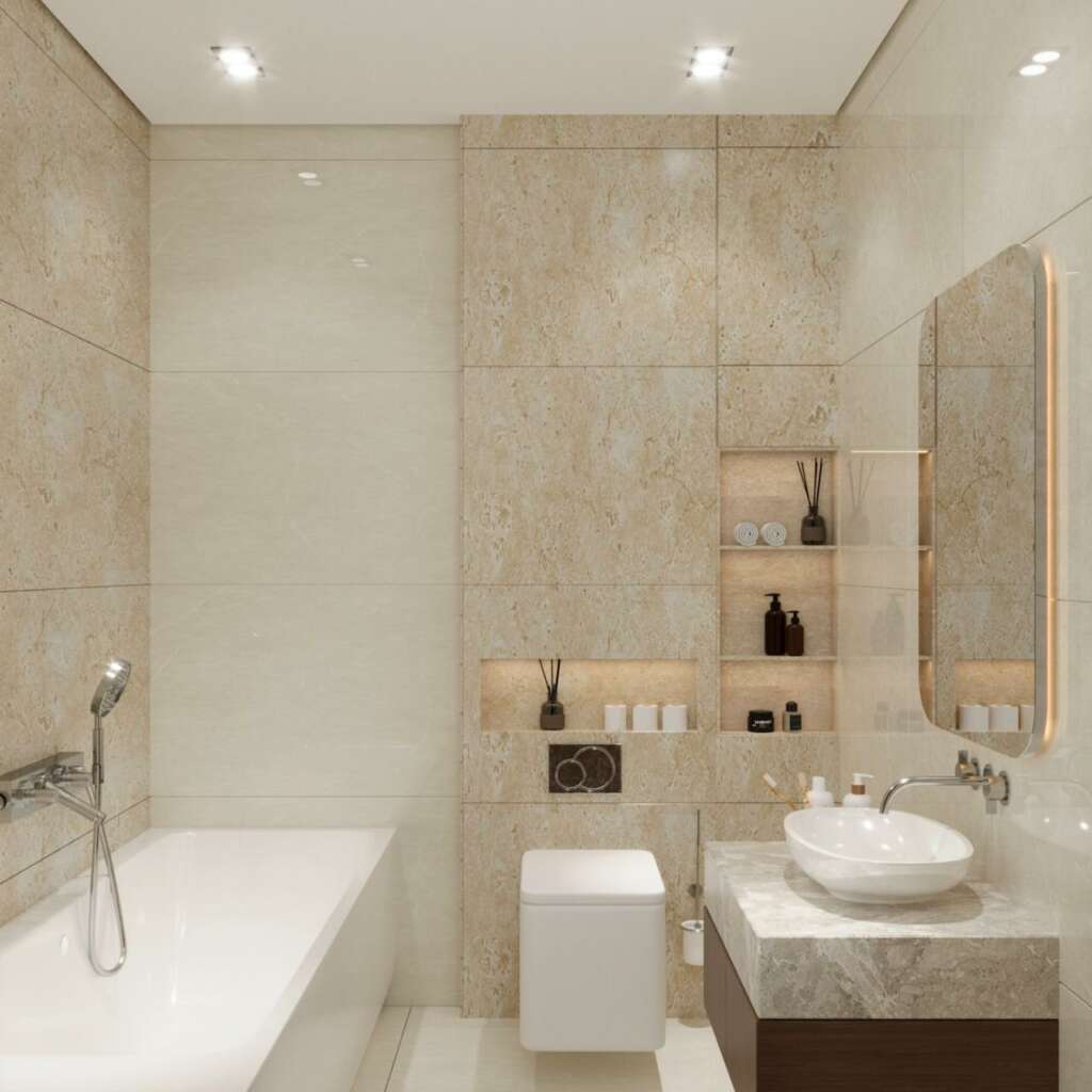 Au sein de la résidence Dawha, chaque salle de bain a été conçue pour offrir une expérience alliant luxe, confort et modernité.